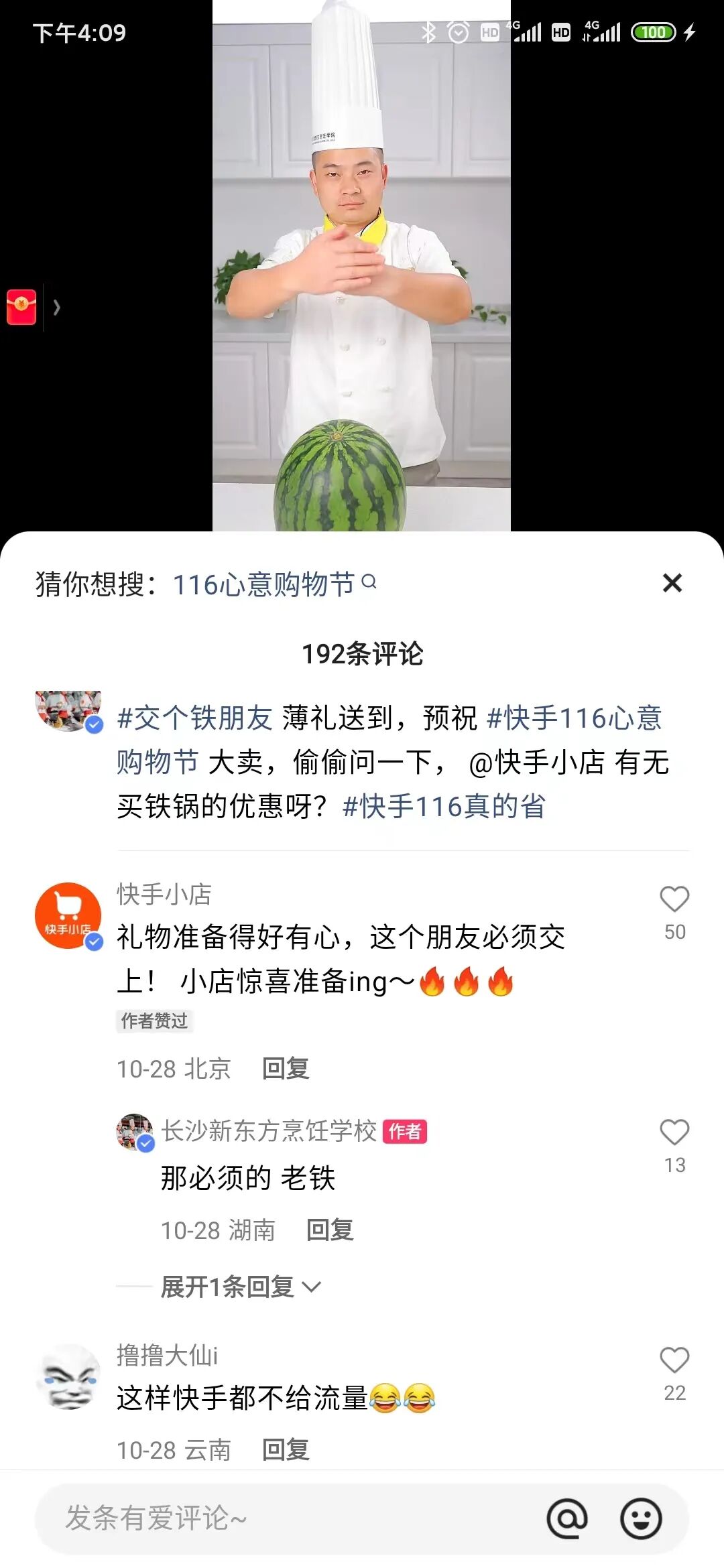 1 趣味互动,认识朋友。10月28日,长沙新东方烹饪学院在快手平台率先发布“快手116 真的省”西瓜雕刻视频赠送快手电商,以精湛的技艺发出“交朋友”的讯号。随后快手电商惊喜现身评论区,表示快手电商的惊喜回礼准备ing。这样的“悬念式”互动引发了人们的好奇心,吊足了人们的胃口,成功带动了一波围观。与此同时,快手电商顺势在站内发起“交个铁朋友”活动,更让这波双方的“交友”互动引发了更大范围的关注。 2 以礼相待,交定朋友。承接快手电商“究竟要给长沙新东方烹饪学校回什么惊喜”的流量,10月31日,谜底揭晓,原来谜底就藏在谜面上——快手电商真的线下为长沙新东方烹饪学院送去666口铁锅,一起「交个“铁”朋友」。消息一出,再次掀起一波流量关注,扩散出了更大的话题价值。可以说,按照时间先后顺序层层递进,环环相扣,成功演绎了一出“交个铁朋友”的跨界互撩,达到了极为出色的传播推广效果。