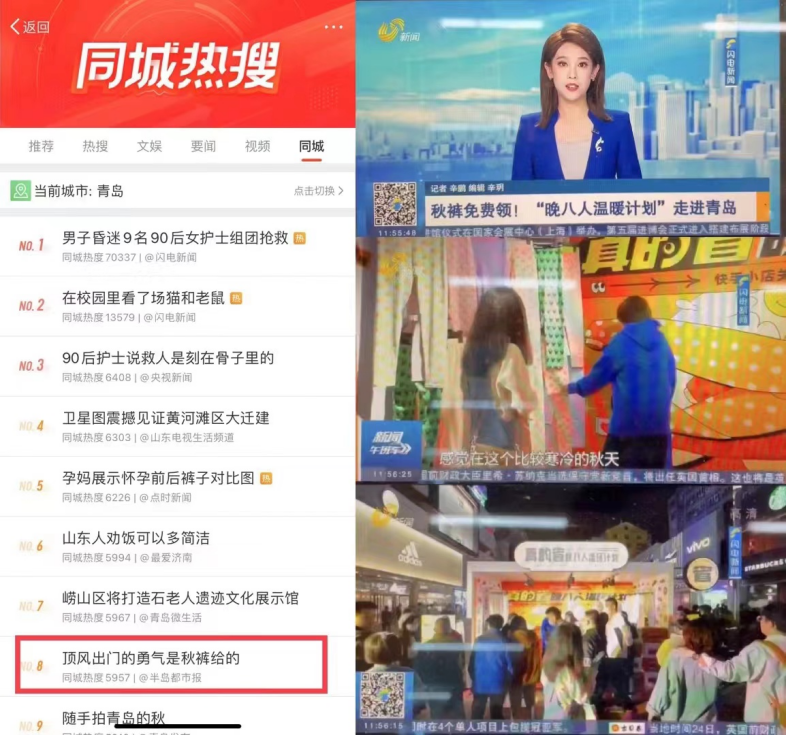 不可否认,一场成功的campaign背后一定是一场多方的共赢。以此来反观快手116心意购物节在11月电商大促的密集期能脱颖而出的关键,笔者认为在于快手电商用「真的省」的核心概念以更落地的策略,为我们展示了其对用户经营的深度思考。抛开电商大促繁杂的一切,“省”是用户最终的追求。于是,在快手电商这场campaign里,“省”既是传播的出发点,也是最终的价值落点,在平台塑造的“走心”与“趣味”内容的情感氛围里,快手电商找到了区别以往的新价值。于营销而言,在「真的省」的核心概念之外,快手电商通过互动和内容创意玩法,激活了平台“内容场”的力量。过程中将“走心”与“有趣”作为价值着力点,用“省”衔接起品牌与用户之间的关系,并通过强共鸣、强互动的双线内容逻辑,一面走心地表达品牌暖意十足的人文关怀,一面趣味地传达品牌实在心意。这一套双线内容的联动玩法,不仅有效拓展大众对于快手电商省心、省时、省力、省钱的联想,其所产生的营销乘数效应也被层层放大。据了解,仅social视频《天冷了,爱省的晚八人都在穿》预计覆盖人数累计1000w+人;#秋裤变装大赛 话题登陆站内挑战榜NO.19,站内热榜NO.27;晚八人线下快闪活动不仅在青岛地域内反响热烈,获山东电视台新闻频道-新闻午班车栏目报道,还引发小红书kol纷纷前往当地打卡。10月25日,活动同款话题词#顶风出门的勇气是秋裤给的#登微博同城榜NO.8。