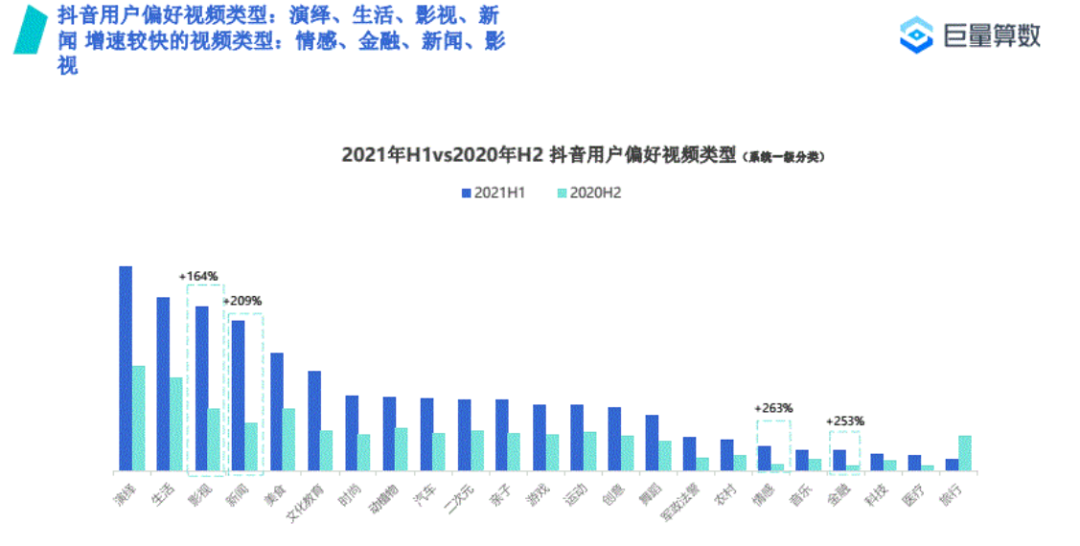 出圈的希望仍被寄托在短视频身上。短视频需要内容,长视频需要盘活内容,这是众所周知的事实。《2021中国网络视听发展研究报告》显示,有超六成的观众是先被短视频吸引才去观看同名长视频节目;在巨量算数2021年公布的《抖音用户画像报告》中,影视类内容仅次于演绎、生活,排在抖音用户偏好视频类型中的第三名——要知道,在2020年,它还在美食之后,排在第四名。