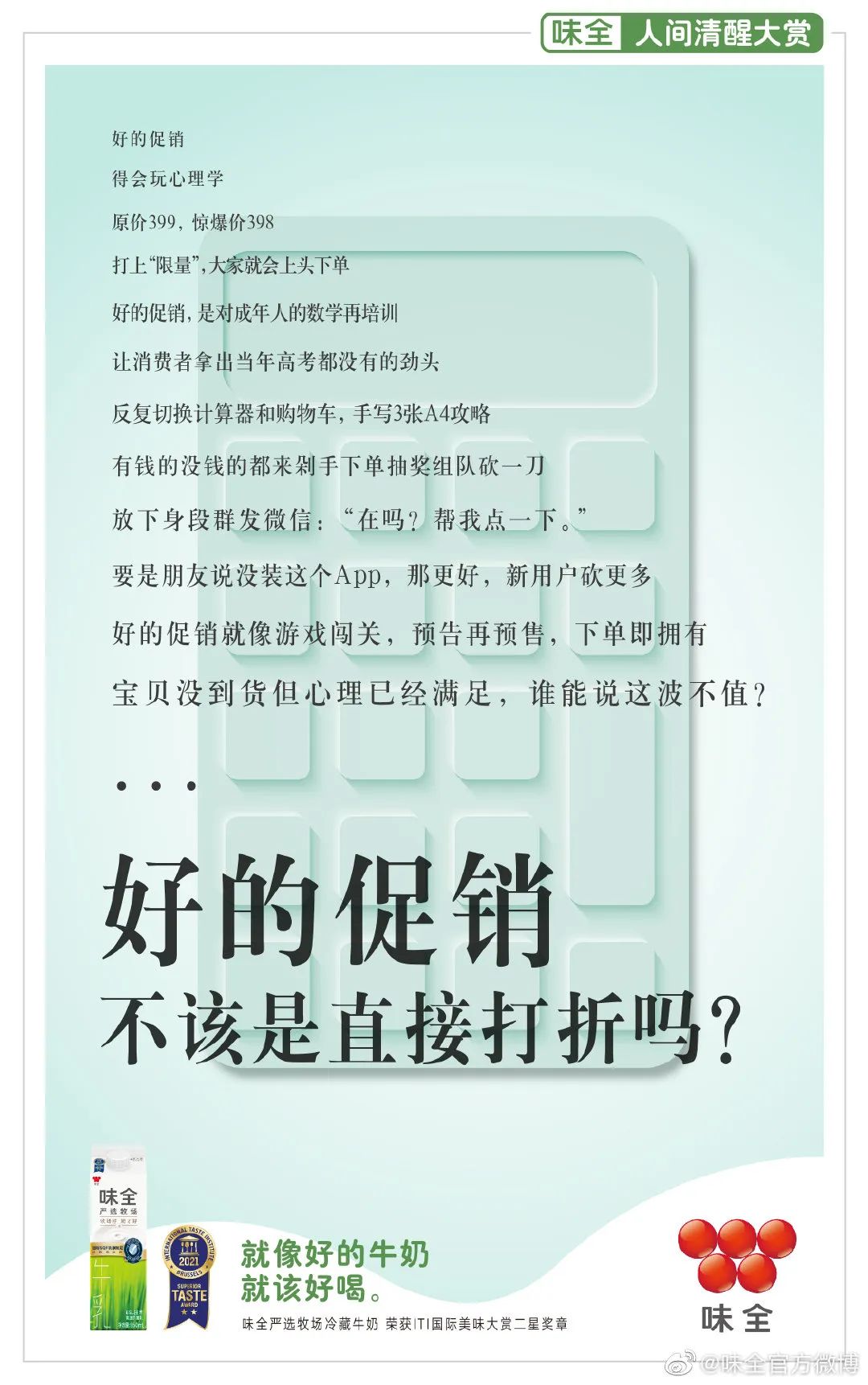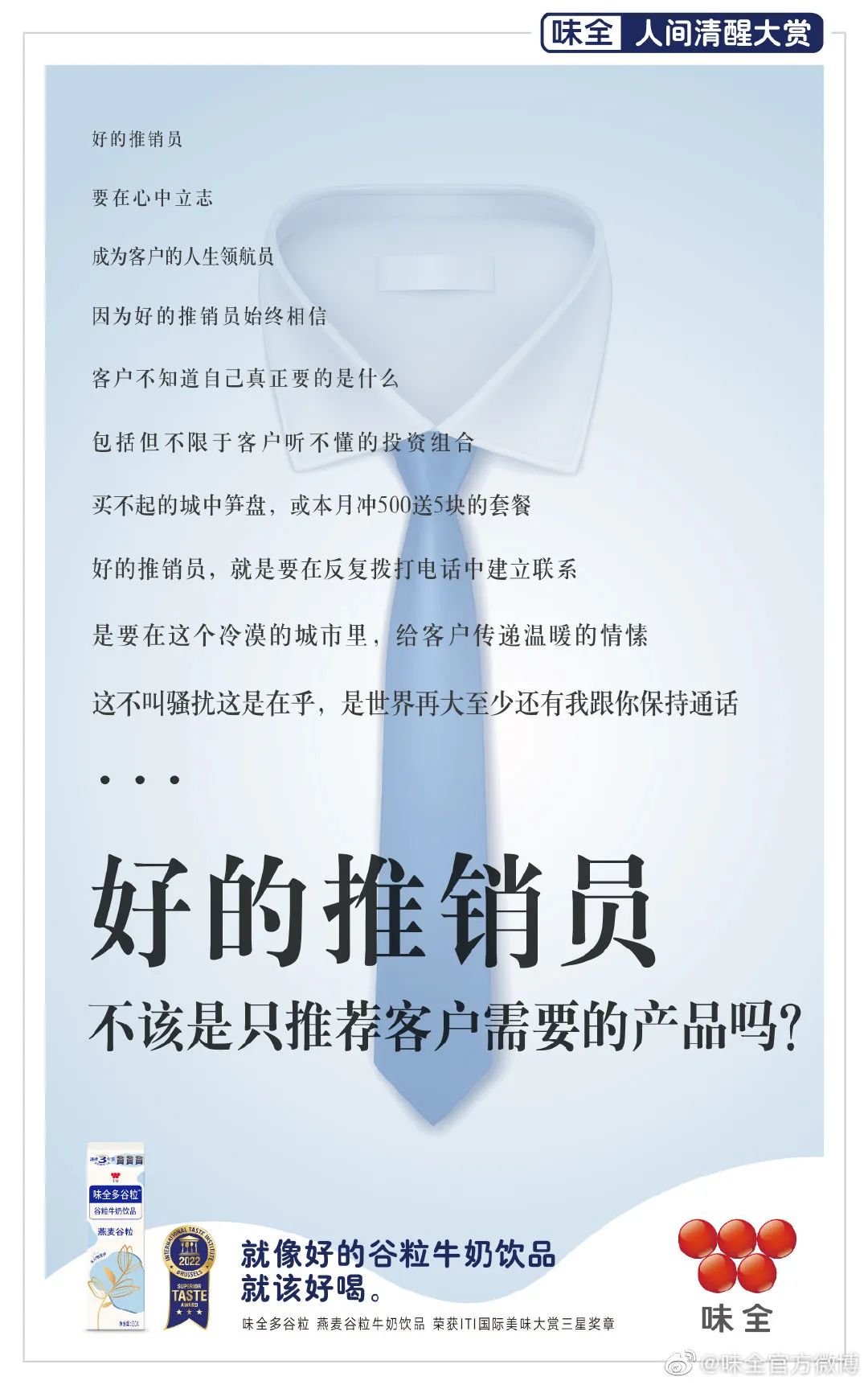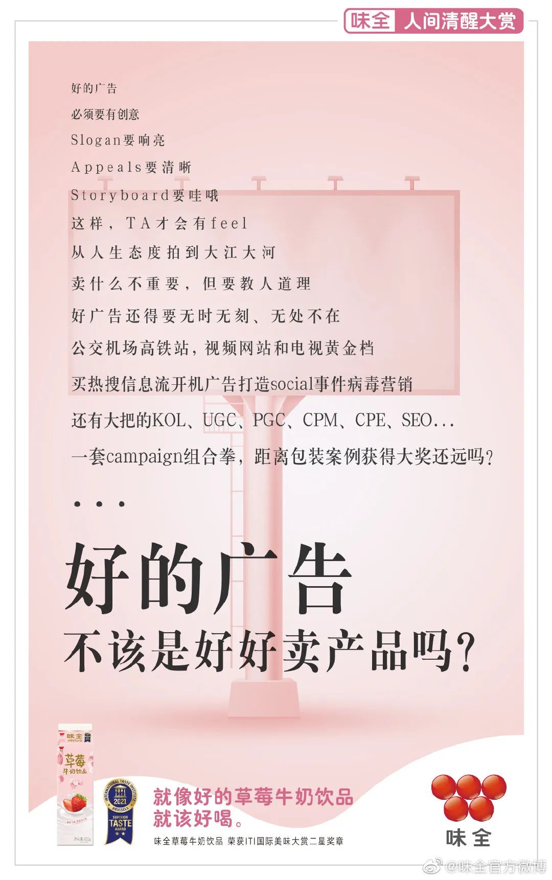 最近,味全做了一条不一样的乳品广告,大谈什么是好的广告,简直是广告界的人间清醒。