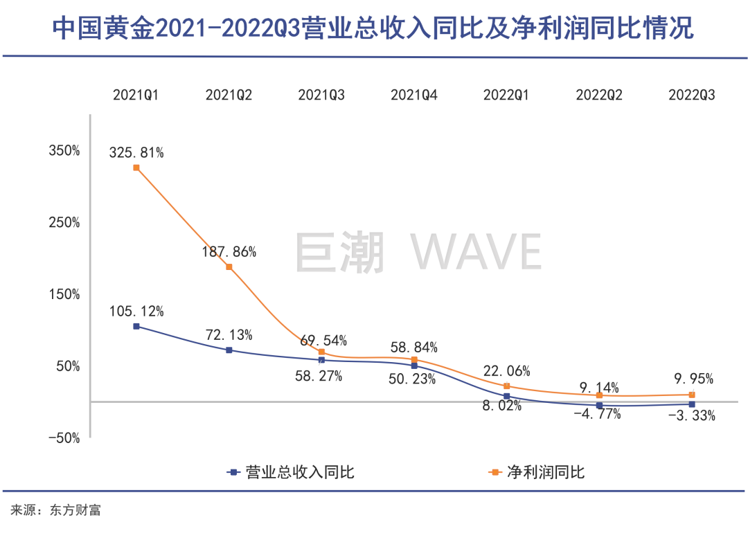 即便是中国黄金的净利润仍有近10%的增长,给行业撑起了一点“脸面”,但是对比去年的冲劲,2022年实则软绵无力。
