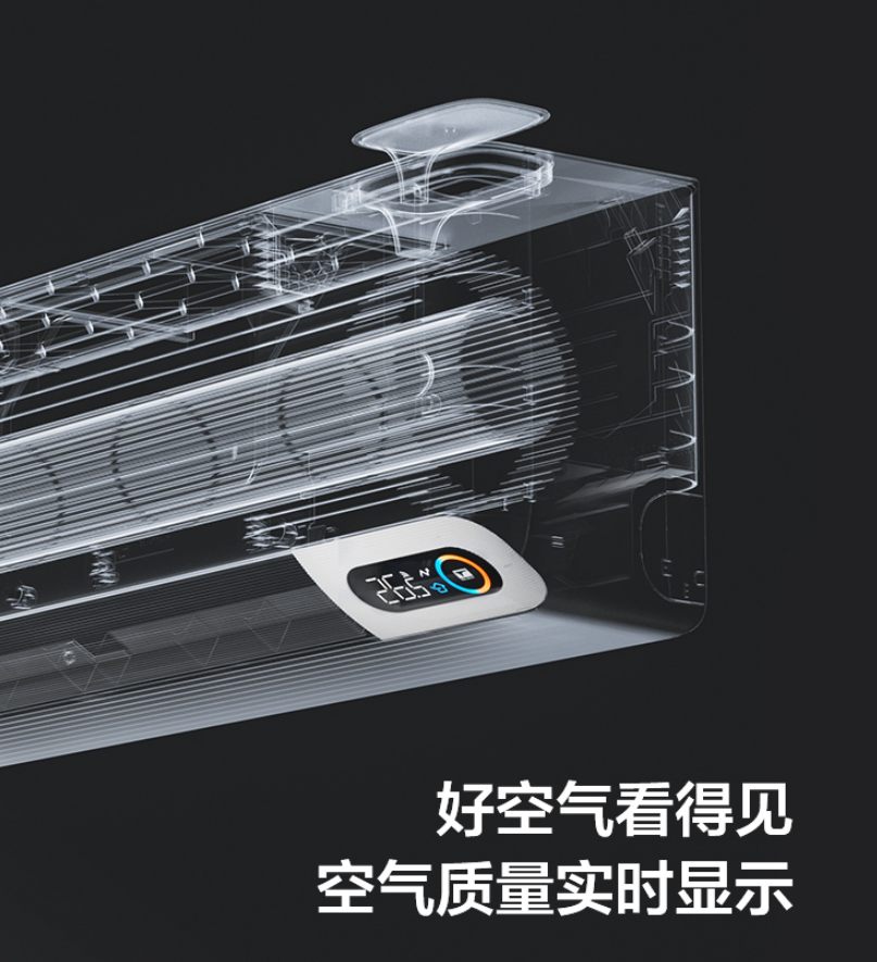 除了不用二次打墙孔每小时60立方米的大新风量,空气质量实时显示是TCL新风空调小蓝翼II的另一大杀手锏。