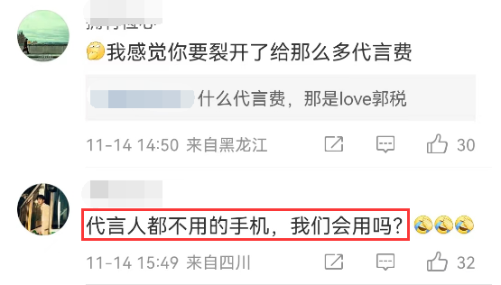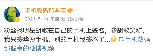 苏炳添曾晒出一条贴满核酸贴纸的微博,被人扒到手机就是代言的小米手机。还有网友提到胡歌曾代言荣耀手机,粉丝拿手机找胡歌签名,胡歌回应目前只能给华为手机签。