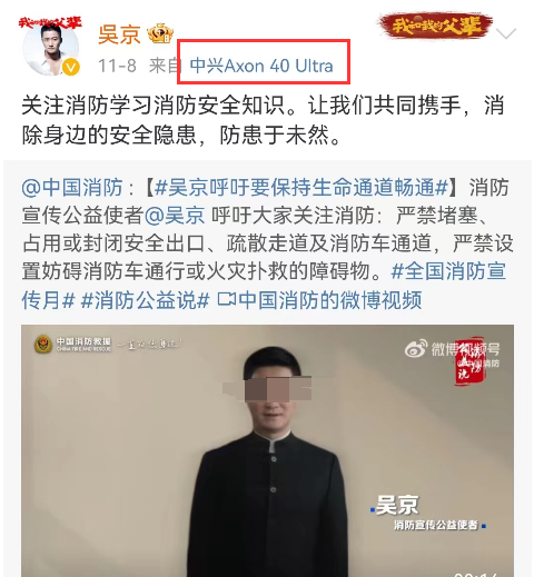 比如吴京前几天发的微博,会特地露出代言手机后缀。