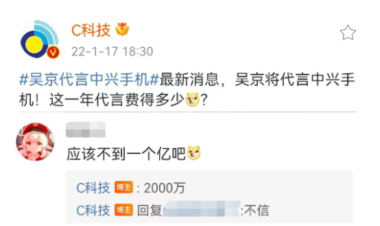 中兴1月官宣代言人吴京后,评论区就炸了。有人评吴京和中兴的形象很搭。中兴这一重量级的官宣,也让低调已久的品牌重回大众视野。