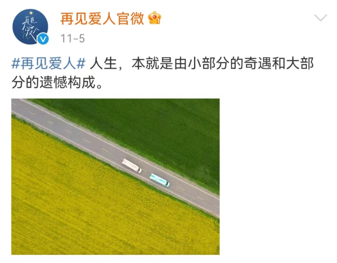 而对比当前恋综遍地开花的盛况,为什么《再见爱人》能在以基调就是“再见”开始,收获大家不断的关注,可能答案就藏在节目的细枝末节里,其官博在综艺正式开播的第五天发了这么一句——