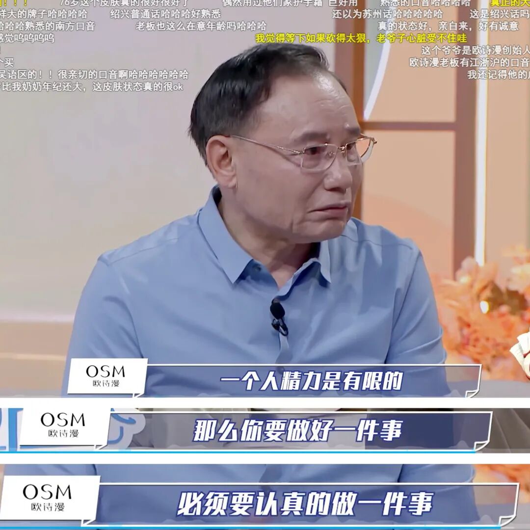 在这之前,欧诗漫这个老牌国货对产品和成分的营销其实并不算多。当李佳琦问到为什么欧诗漫55年只在珍珠赛道钻研时,沈志荣答道:“一个人精力是有限的,做好一件事,就必须认真做好这件事。”