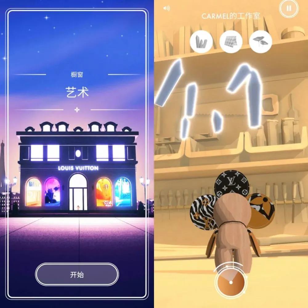 不仅爱马仕,LV近期也在官方应用程序内上线了三款游戏。一款是名为“200 Mania : Louis Board Game Club”的棋盘游戏,汇集了井字棋、五子棋、国际围棋,Logo和花押字图案被用于装饰棋子和棋盘;“Super Natural : courir pour l’avenir”和“L’Art des vitrines”均以闯关冒险为主,这也是奢侈品牌上线电子游戏时最常见的主题。