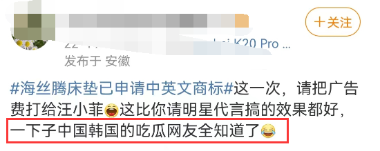 虽然汪小菲不要体面,可海丝腾也太不给汪小菲面子了,不排除故意倒油。不过海丝腾是懂营销的,8g冲浪前排吃瓜,成功骗到新slogan:海丝腾牌床垫,汪小菲忘不了,具俊晔舍不得,点火也烧不着。