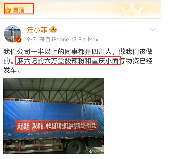 汪小菲微博个人介绍、置顶也都提了麻六记,不难看出他的营销心机。