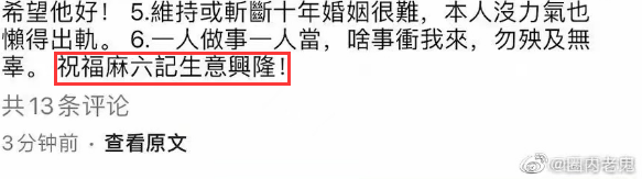要知道麻六记可是汪小菲亲手打造品牌,翻看大S的回应,同样总提到一句:祝福麻六记生意兴隆。