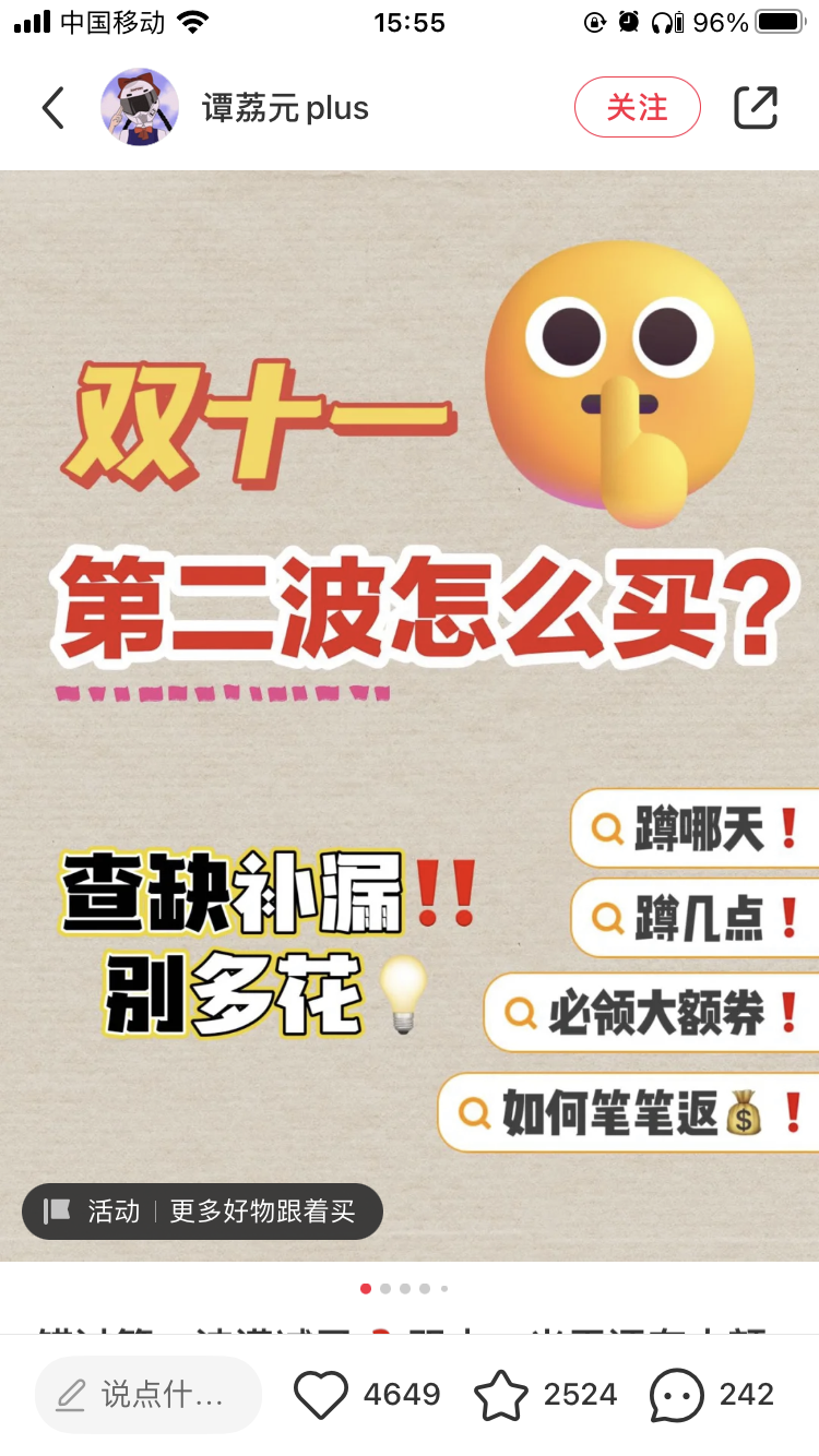 在双11节点,消费者需要知道双11怎么买最实惠,什么东西最值得入手,小红书在前置种草侧提供了大量消费者关注的内容,在小红书种草了解购物攻略,分享双11经验,在天猫下单。