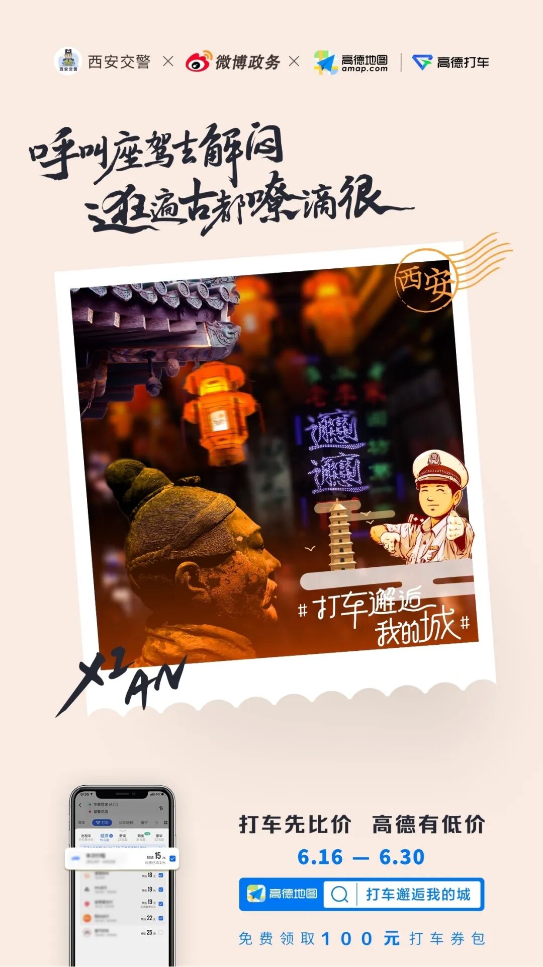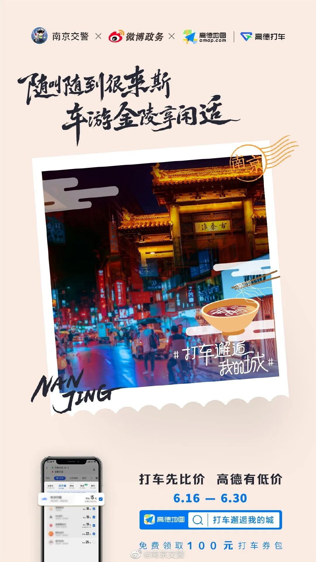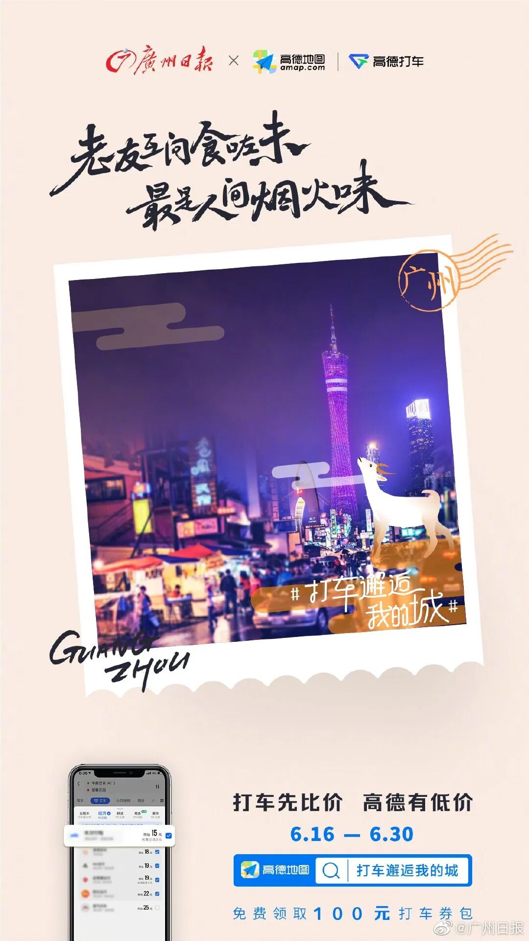 此次高德地图推出的打车比价功能,无疑是在做「产品升级」,也是在塑造品牌的差异化形象。一般人们买东西都喜欢“货比三家”,参照不同平台的价格,再选择性价比高的,可是,人们在打车的时候,却没有这个习惯,而一般的打车平台也没有这个功能。高德洞察用户的需求,上线了打车比价功能,用户只需在打车之前,打开高德地图APP,点击“打车”栏目,即可方便地查看各网约车平台的预估价格,以及哪些平台正在做优惠促销,这样让乘客在下单呼叫前,价格可以一目了然,让打车也能价比三家。就是通过上线这样一个功能,高德试图改变用户的行为习惯,引导用户使用该功能。所以我们可以看到,高德其实在做的是,通过两支趣味的广告告知该利益点,用接地气的方式拉近和年轻人的距离,并引导用户的行为。自6月17日起,连续四个周三,确定为高德打车的比价日,通过提醒用户“打车先比价,高德有低价”比价,帮助用户选择价格更优惠的出行方式。受疫情影响,过去一段时间,出行平台司机的收入在一定程度上有所减小,高德打车拿出专项资金,用于此次比价补贴的发放,无疑能让用户和出行司机都受益。不仅如此,为了助力城市复苏,一起找回烟火气。高德还联合地方交警,地方媒体,以#打车邂逅我的城#为话题,发布联合海报,文案结合地方特色,引导用户在高德地图中搜索“打车邂逅我的城”,免费领取100元的打车券包。通过联合地方媒体,放大传播声量,将高德打车的优惠讯息辐射到最精准的目标用户。高德正是通过软萌、土味沙雕的广告、以及富有共鸣的社会话题,贴合年轻人喜好的方式做营销,让这些功能够更贴近用户的日常,不断将品牌声量打入受众心智,让“打车先比价,高德有低价”的广告诉求深入人心。