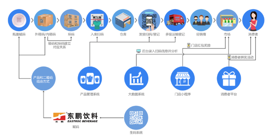 产品投放市场后,如何对门店和消费者进行精细化管理呢?如果门店开箱后能扫描箱子的内码,用户购买后能扫描盖码,那东鹏就能实现更精准的渠道管理。
