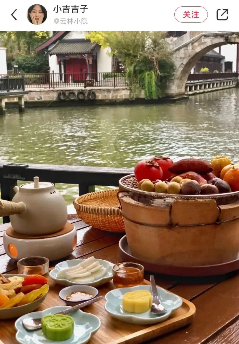 还有的地方往农家乐发展,广东有一家农场的围炉煮茶,还能预约柴火焖鸡;