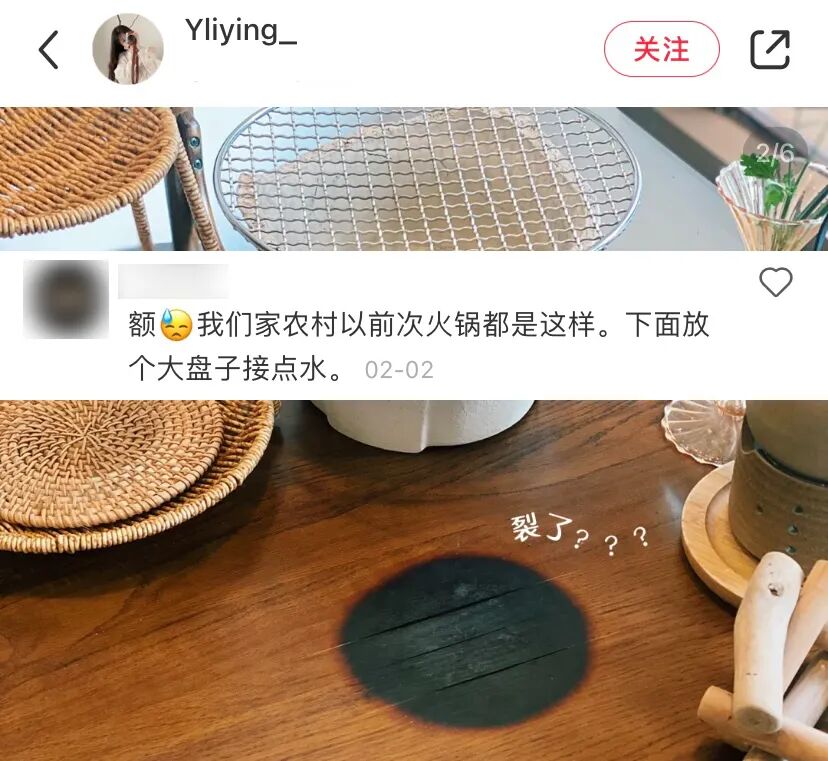 不光食材会烤糊,桌子也会烤糊,还有人接连烫坏好几个桌子都不放弃。