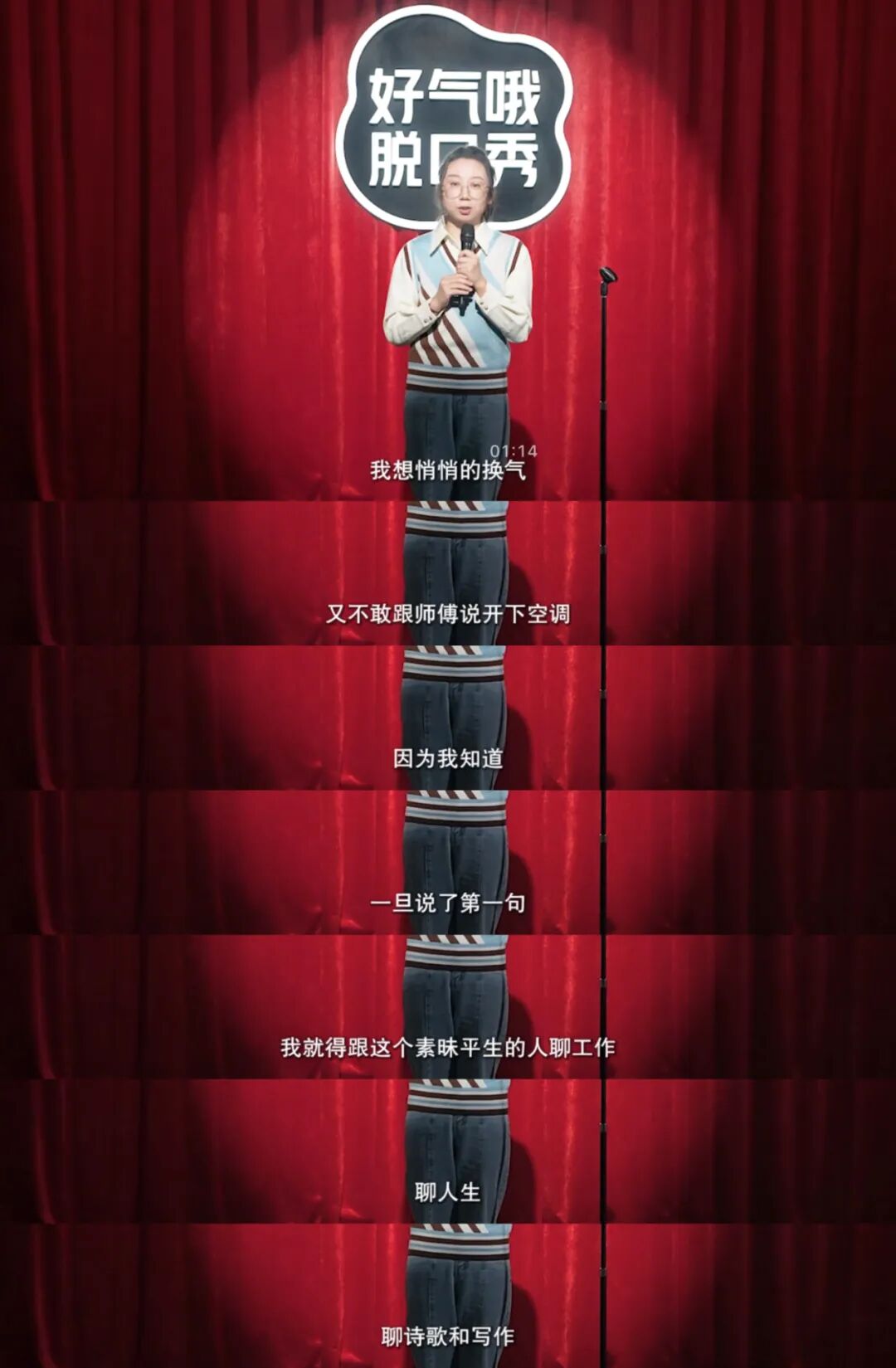 生长于网生一代的Z世代大多沉浸于自己的虚拟世界,线上社交是个顶个的社牛,但许多人到了线下更是十足的社恐患者,而《中青报》更是曾经统计过有超过80%的大学生自认为是社恐人士,鸟鸟的脱口秀之所以能活,或许正与基数庞大的社恐人群密不可分。因此在鸟鸟的《“好气哦”脱口秀》中,由文本勾勒出的车内有异味场景以及害怕司机师傅接上话茬就开始侃天侃地的思绪真的就是现实中社恐人担心的因素,从而会让观众产生“世另我”的感慨,不知不觉中沉浸在了鸟鸟用文本勾勒的场景中。