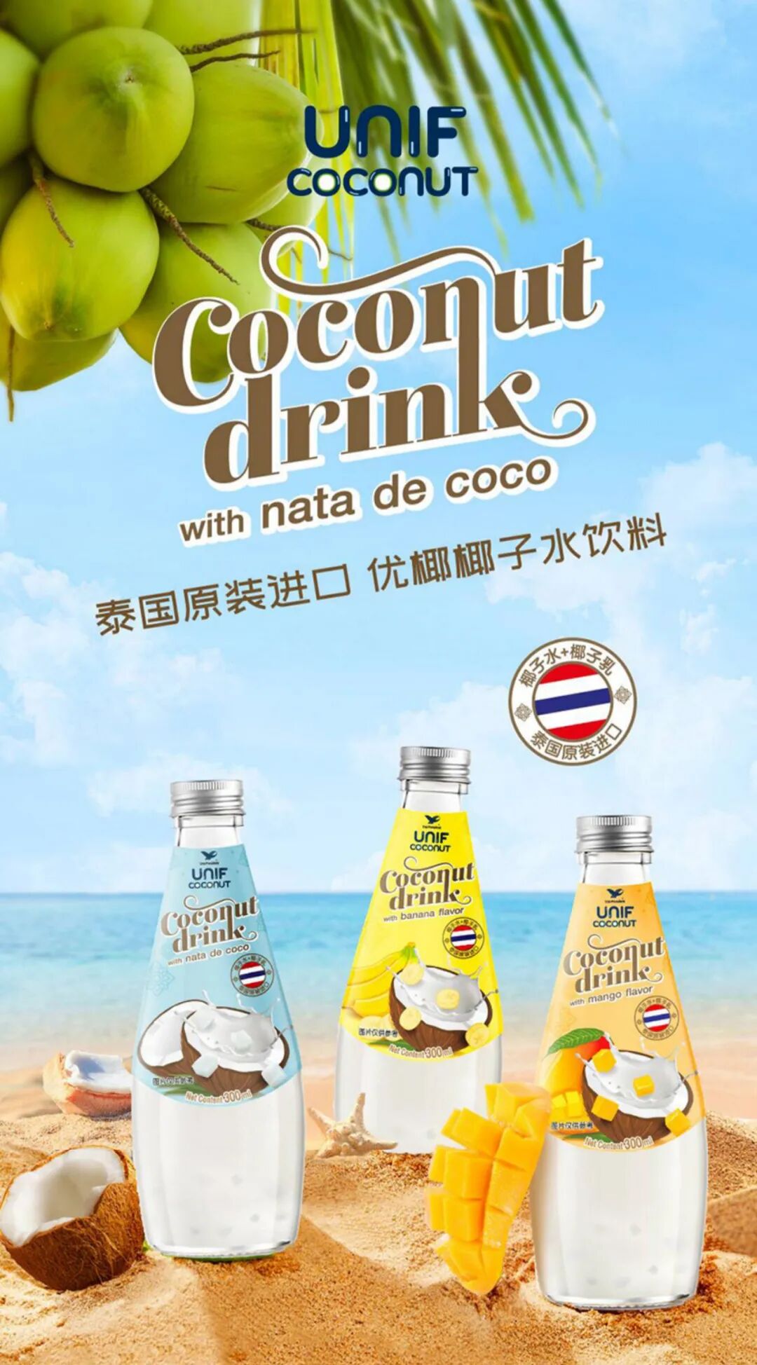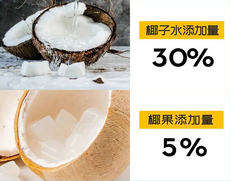 现阶段,市面上的椰子水产品大致可分为三类,天然椰子水、调配椰子水以及风味椰子水。本次统一推出的椰子水添加纯净水、30%椰子水、20%椰子乳、5%椰果及白砂糖等,是一款调配而成的椰子水饮料,相较于100%椰子水口感更为丰富。