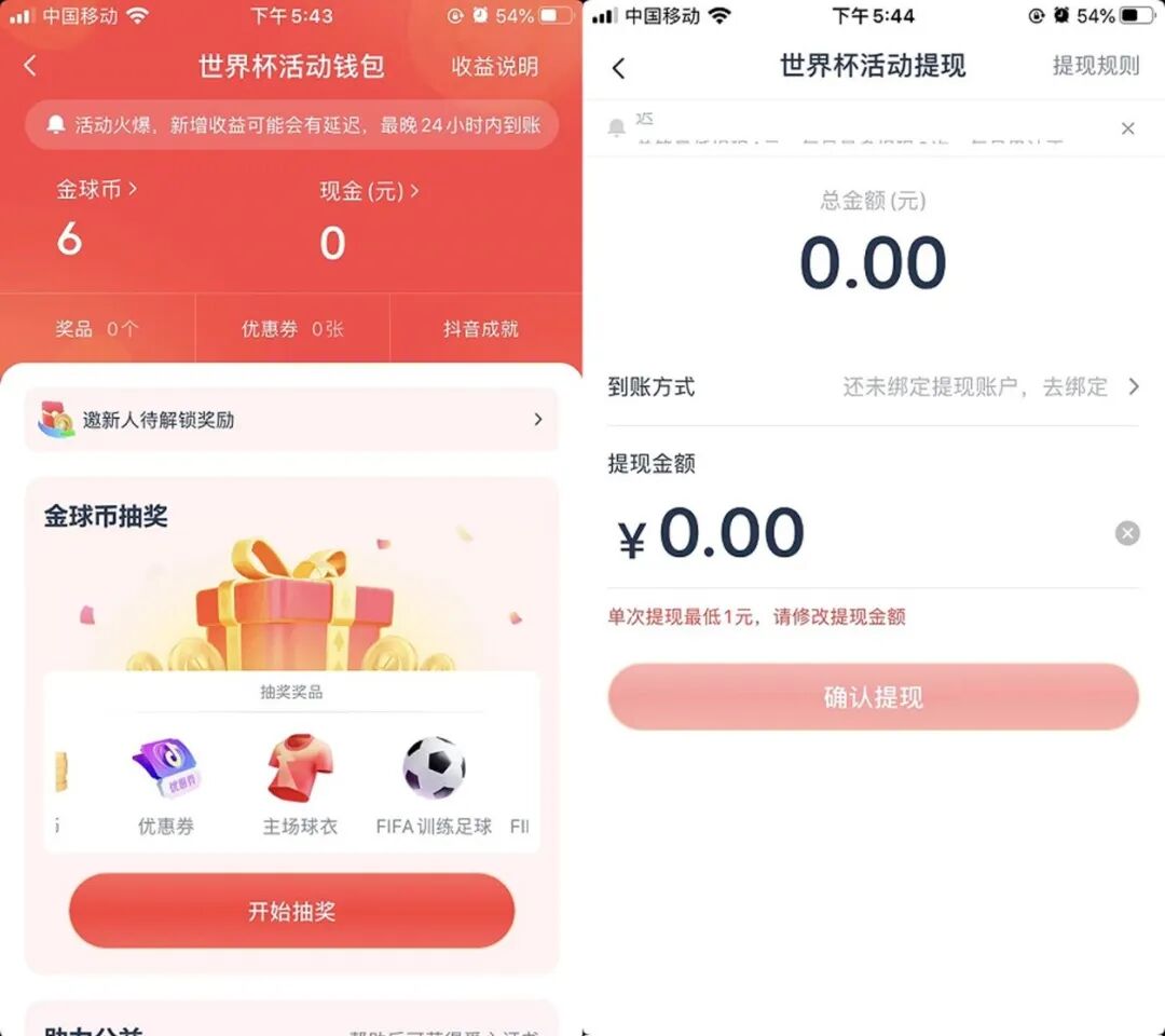 最重要的,在抖音看世界杯获得的金球币还可以转换成现金并可提现。