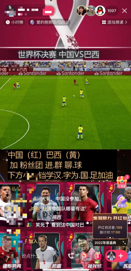 不止女足,还有更“逼真”的世界杯预测赛,从场地到球员甚至到球衣都能完美复刻,上万人涌入直播间为自己喜欢的球队加油,每看到赛事的“高潮”,还有不少人为主播点赞送礼物。