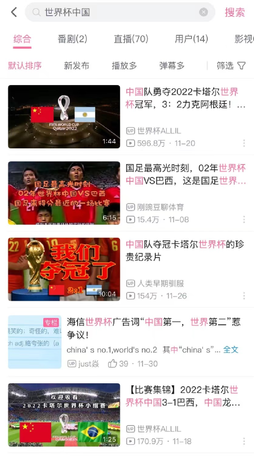 除此之外,还有播放量500万+的中国队3:2战胜阿根廷混剪、播放量169万中国3:1战胜巴西上演帽子戏法等等“超燃二创视频”,让不少球迷在没有中国的世界杯中找到了“归属感”,不少球迷表示“这病从06年开始,每4年就要发作一次”。