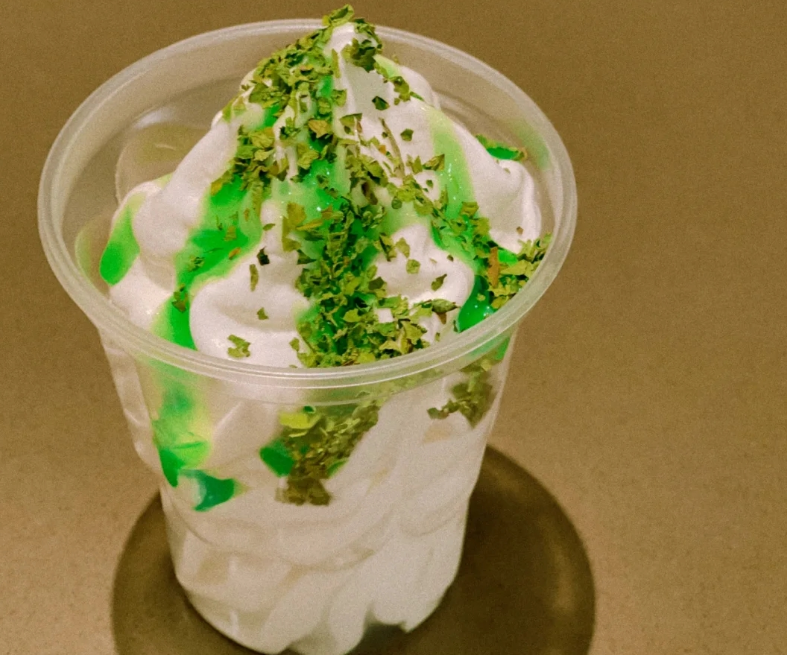 但香菜重度爱好者,看到香菜冰激凌最终出品,集体下头沉默。新鲜香菜叶看不见,只有科技与狠活——“方便面调料脱水蔬菜+青柠酱+冰淇淋”。