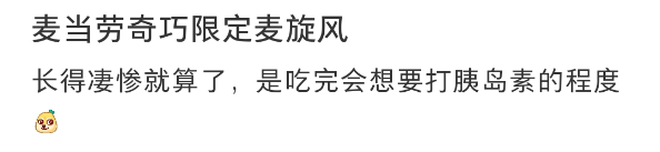 而且奇巧麦旋风的问题已经不是简单的严重不符合,我怀疑麦当劳新品是走错片场,整成了地方特产: