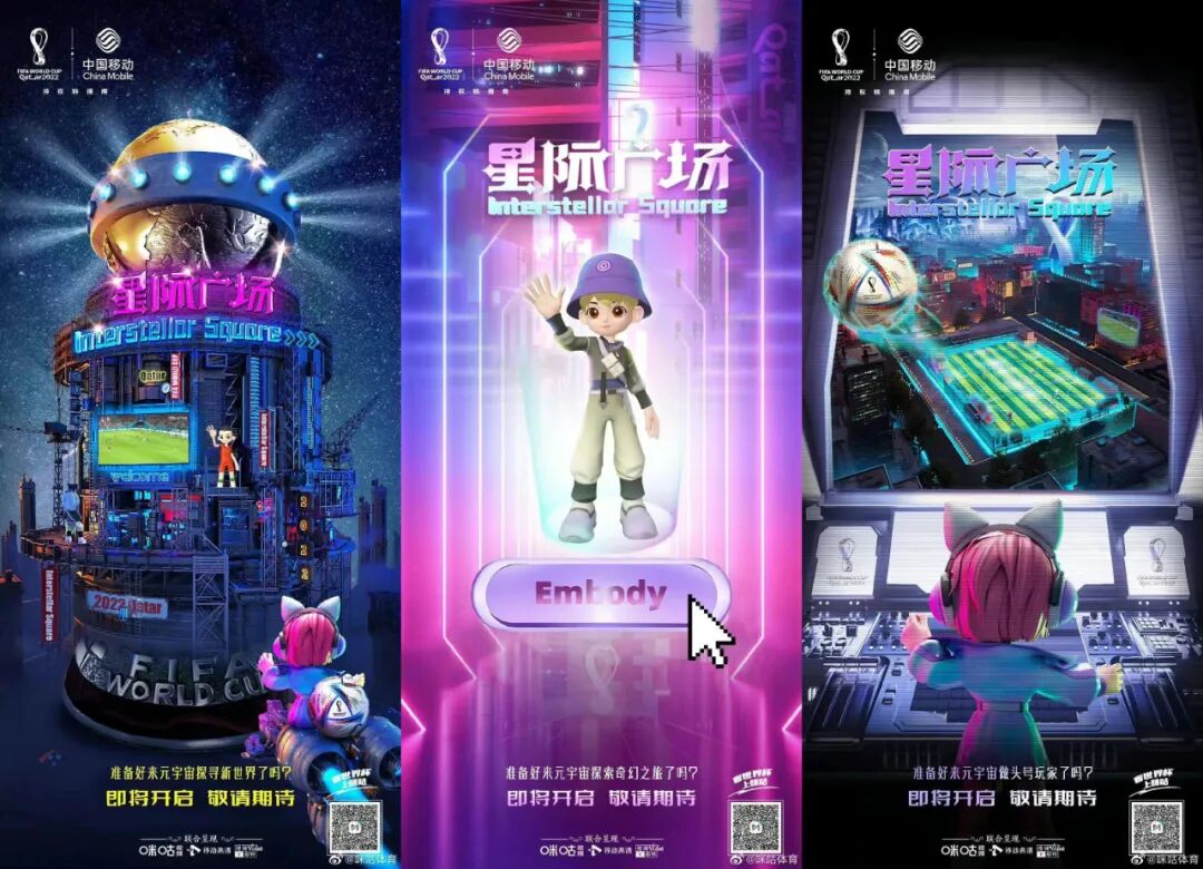 所以说,不可否定中国移动在对此次世界杯众的重视,无论是角色选定还是投放的位置上,中国移动这波操作确实没有可以挑刺的地方,但是对于这支的预热片主要亮点毕竟是裸眼3D,本身就自带看点,但是有点可惜的是,整个短片冲击力不够强,除了人物是3D的,在表现形式上都没有真正发挥3D的效果。要知道,像这种裸眼3D的效果展示其实很容易打造出爆款,引发网友的关注和讨论,但中国移动这支短片却聚焦在了人物拼凑上,没有很出彩的地方,也没有让3D效果真正的优势出来,也有点浪费了这一个天然的出圈机会。其次,中国移动此次想要突出元宇宙的元素,但是除了人物是元宇宙的,还有玩法上也融入了,但还是不够的明显。比如在元宇宙场景下,中国移动打造的首款以世界杯为主题的云原生社交互动观赛平台——星际广场。将音乐、体育、文旅、游戏和科技融合在一起,用户还可以用专属的虚拟身份进行登录观赛,并在其中感受世界杯带来的魅力。还推出足球比赛,数智竞技、健身互动、健脑益智四大主题的精品云游戏,让用户可以边玩游戏边观赛,甚至还有全新裸眼3D视频彩铃,多个角度让用户解锁不一样的世界杯。