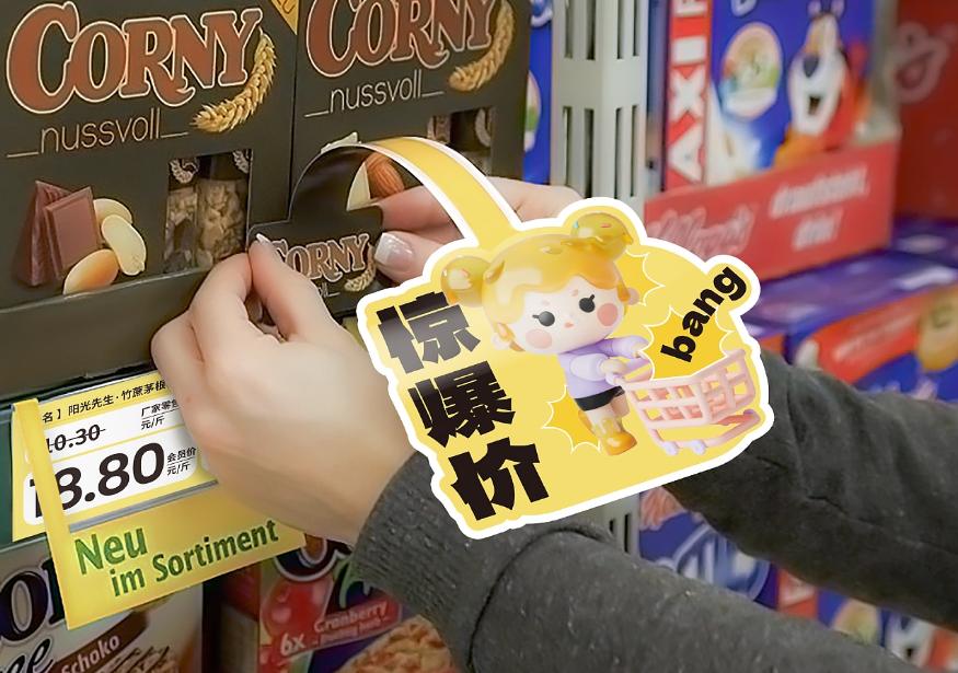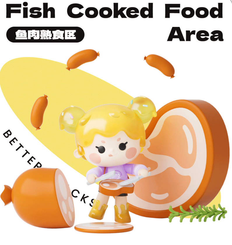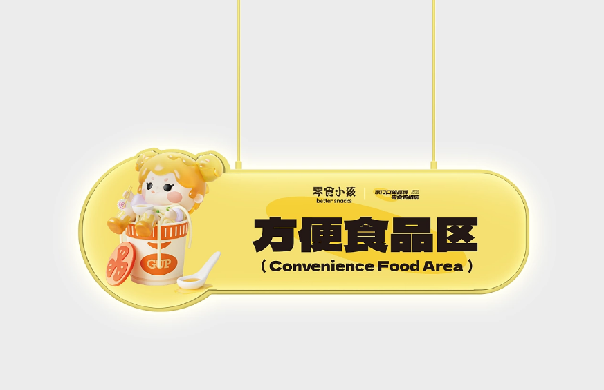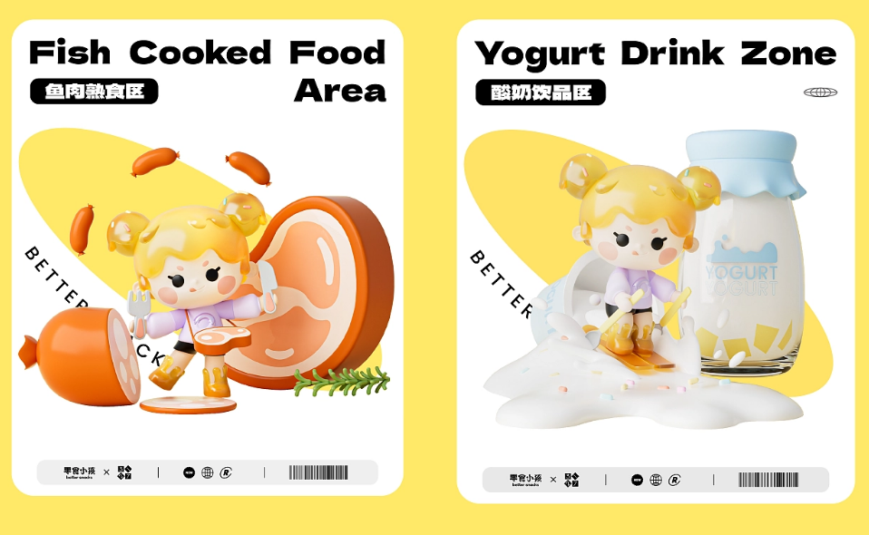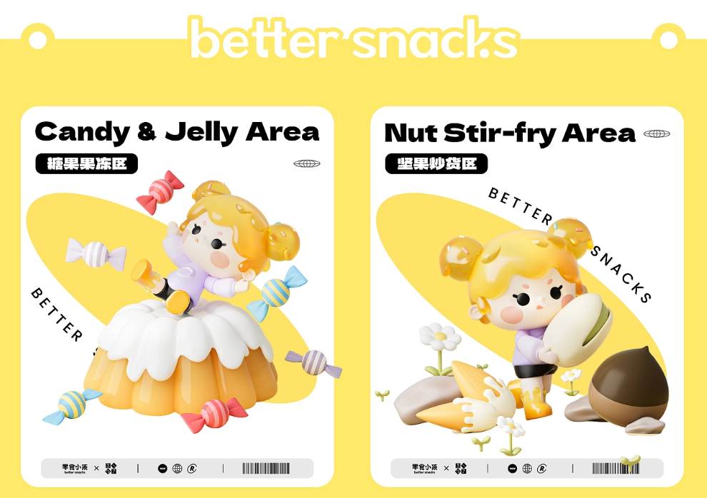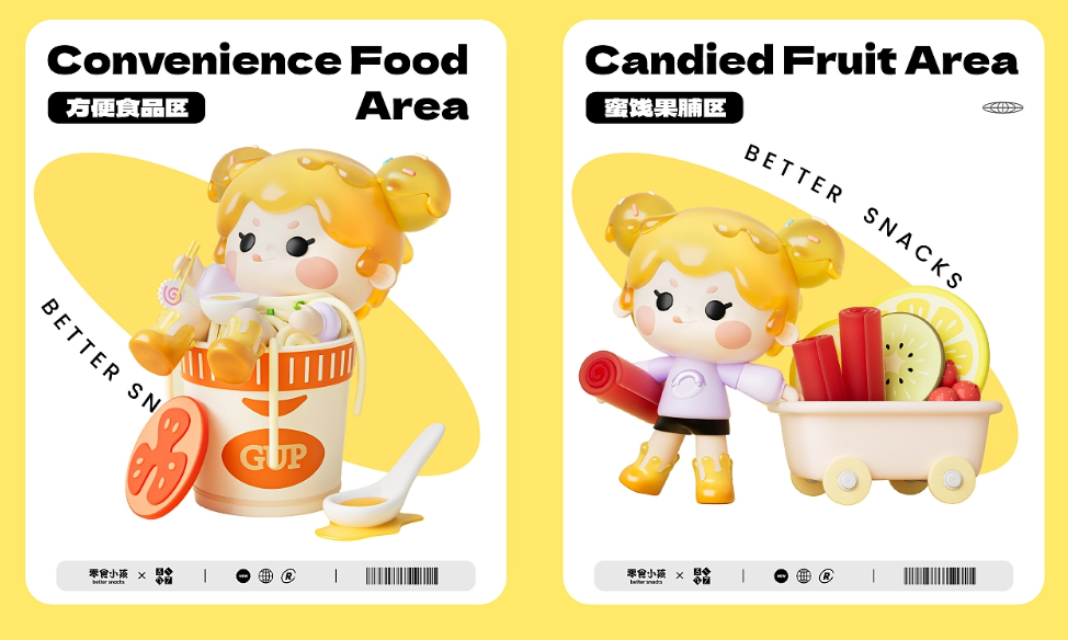 以IP和产品类别进行融合,比如:膨化饼干区