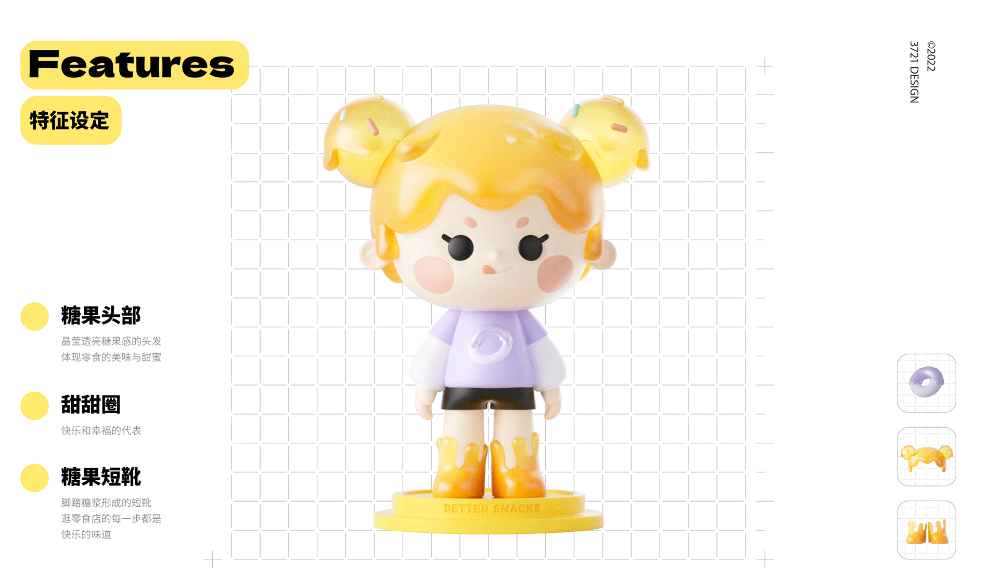 在IP元素的设定上,以整个糖果作为头部