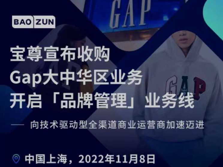 2022年11月8日,宝尊官方微信公众平台发布消息称,将以全现金交易的方式收购GAP大中华区业务。作为收购计划的一部分,宝尊还会推出全新的“品牌管理”业务线。
