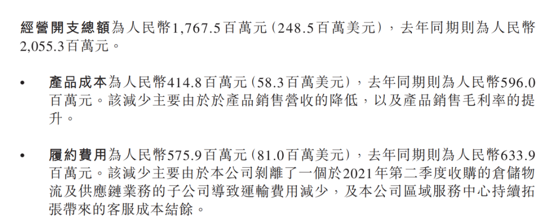 财报显示,2022年Q3,宝尊经营开支总额为17.68亿元,其中履约费用为5.76亿元,虽然因剥离了仓储物流及供应链业务的子公司导致运输费用减少,但宝尊的履约费用仍高居不下。高昂的经营开支,直接决定了宝尊难以爬出亏损的泥潭。