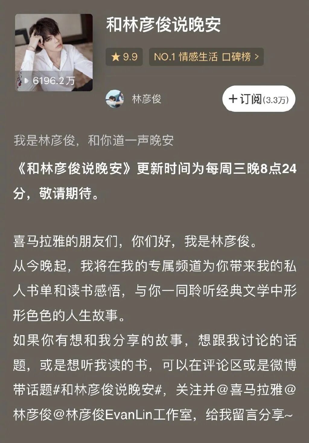其实这并非喜马拉雅第一次采用明星开设专属节目的形式强化平台内容输出力。比如之前喜马拉雅上易烊千玺的《青春52问》、张艺兴的《晚安电台》都是这一类有声节目。