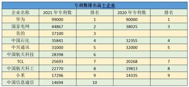 华为持续的高研发投入为华为创造了众多专利数,据中国企业联合会发布的榜单数据显示,华为在2021年的专利数高达99000项,位居中国企业排行榜第一位,而排名第二位的是国家电网,其44867项专利数不足华为专利数的一半。