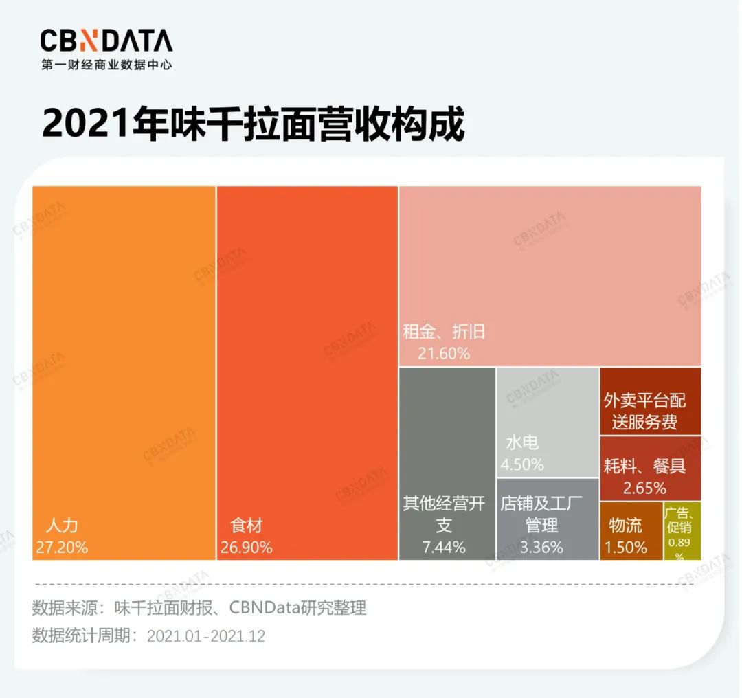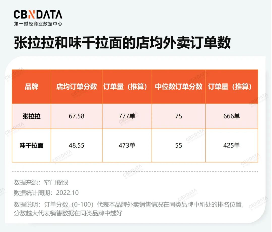 不仅如此,该门店模型并未将大多数餐饮企业均会涉及的一次性耗材、外卖配送费、广告营销费用等纳入考量。以面馆龙头味千拉面为例,光是外卖平台配送服务费占营收的比例就接近3%,而张拉拉的营收更加依赖外卖。根据窄门餐眼数据,张拉拉的外卖订单量是味千拉面的1.5倍不止,其需要支付的外卖配送费更高。若将这些因素全部都考虑进来,不仅回本的时间要拉长,门店盈利也是难题。