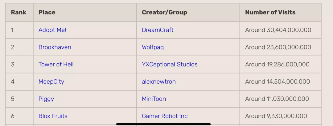 可能有人会觉得,应该没人会把时间浪费在这种游戏上吧?事实上,每天都有4300万个账户通过电脑、手机、平板、PlayStation…登录Roblox,该平台最火的游戏累计访问量过百亿。玩家大部分都是小孩子,根据纽约时报报道,在美国,75%的Roblox玩家年龄在12岁以下。