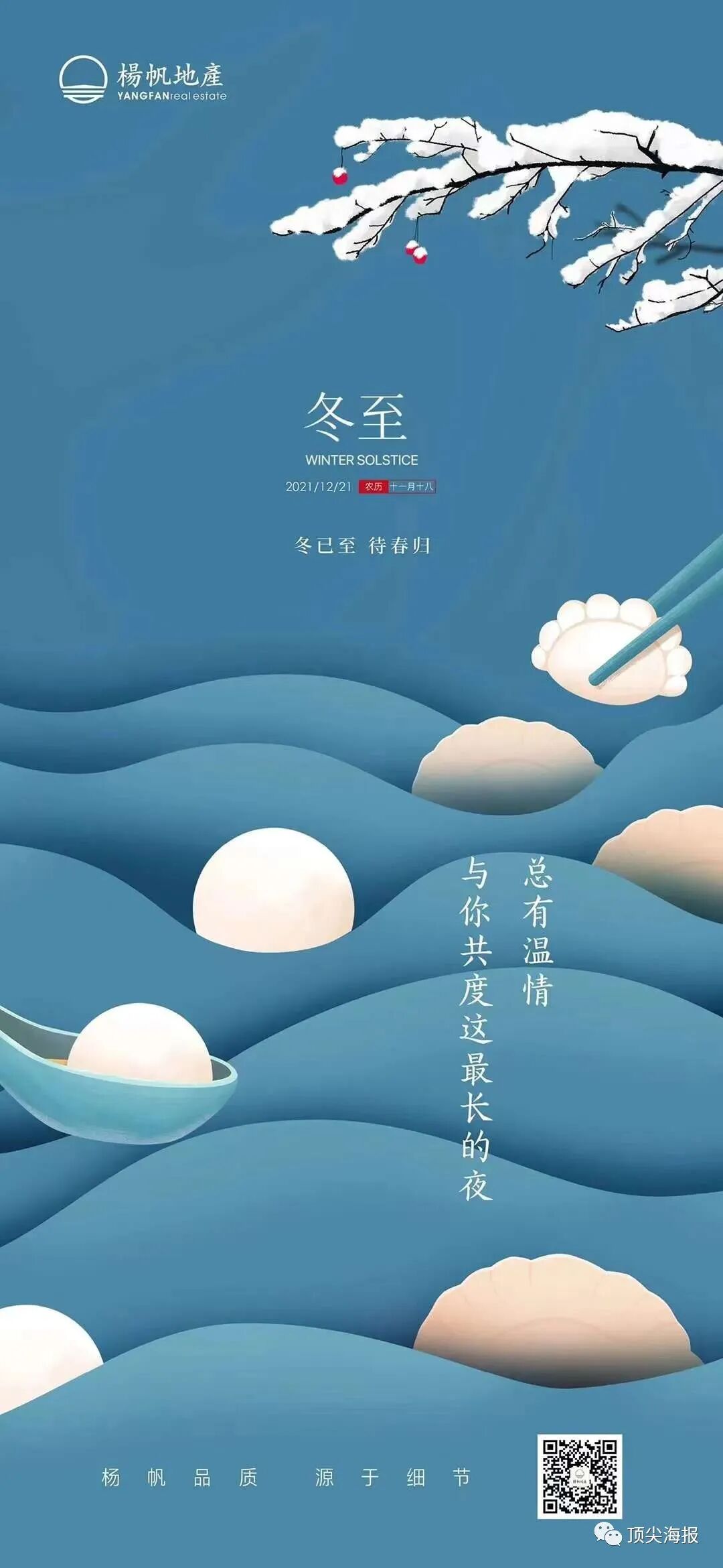 【今日#冬至#】旧去新来,冬至已至。每到此时,身边的一切都充满了“年味”,我们与家人围坐交谈时总不自觉感慨时光飞逝。同样,这天过后,太阳的高度也会逐渐回升,白昼逐日增长,冬至阳生春又来,新的开始,#海报工坊#祝大家平安如意!