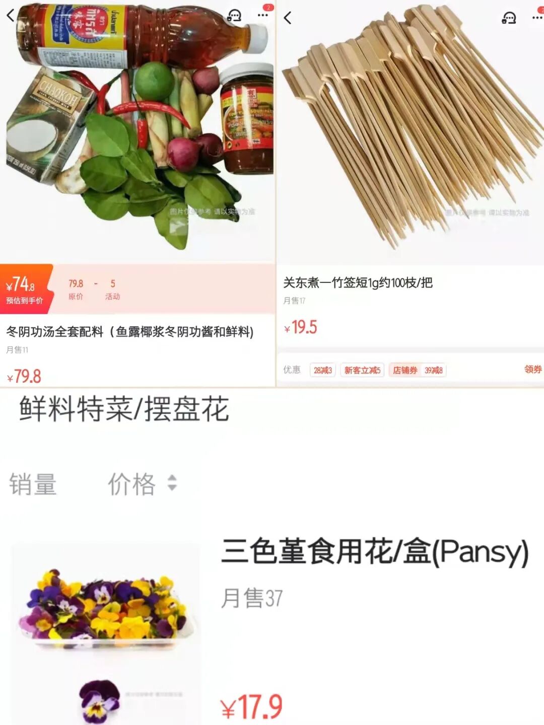 摆盘花、竹签、冬阴功汤料包……上线外卖平台的菜场有诸多特色供给