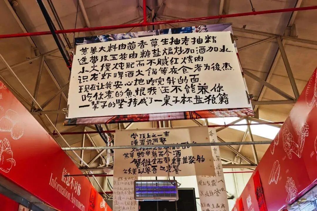 艺术家邱志杰的书法展“民以食为天”在三源里菜市场落地 来源:情绪美术馆