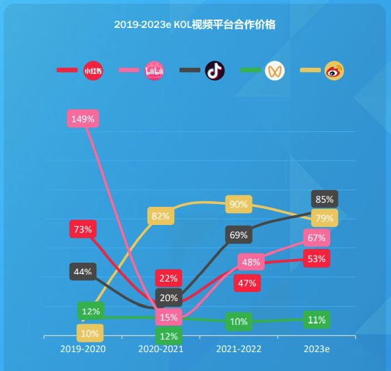 后浪视频平台的KOL价格涨幅波动性高、 双微KOL合作价格增速趋于平稳