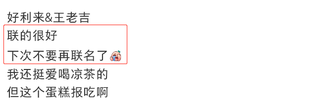 翻了一遍评论后,王老吉和好利来联名争议不少,不过两者还懂得分摊风险,没把鸡蛋放在一个篮子里。这不,双方还推出了其它联名产品:大吉大利酥酥筒、大吉大利糕点。
