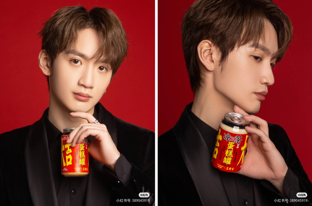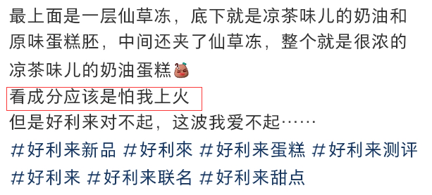 该说不说,甜蜜和吉祥,大家看起来是一种“八竿子打不着”的路人甲关系,愣是被凑成了七大姑八大姨般亲密。只能说,王老吉和好利来是懂搞关系的。虽然联名奇奇怪怪,但是好利来和王老吉做营销一套又一套。重口味的不止是联名蛋糕,还有男色营销。明明是两家的联名,王老吉还蹭上了好利来野生代言人的流量。原来好利来请来自家二公子罗成打广告,罗成拿着凉茶蛋糕上演侧颜杀。还以为是哪家洗剪吹广告,以至于评论区都忍不住发问:买蛋糕送帅哥吗?虽然海报画风走偏了,但赢了热度。图源:好利来评论区评论