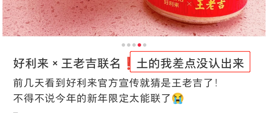 虽然王老吉和好利来是有创意的,但不多。罐身处处透露着一股红红火火恍恍惚惚的气息,夹着三分阴间三分诡异和四分土味。图源:小红书网友评论
