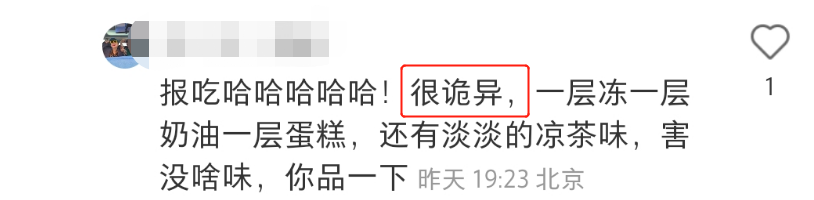正所谓千人有千面,千人有千味,感觉凉茶派和蛋糕派看完都要沉默,也有的在好奇和拒绝之间反复跳横,用“很怪很想吃”来形容最适合不过。图源:小红书网友评论