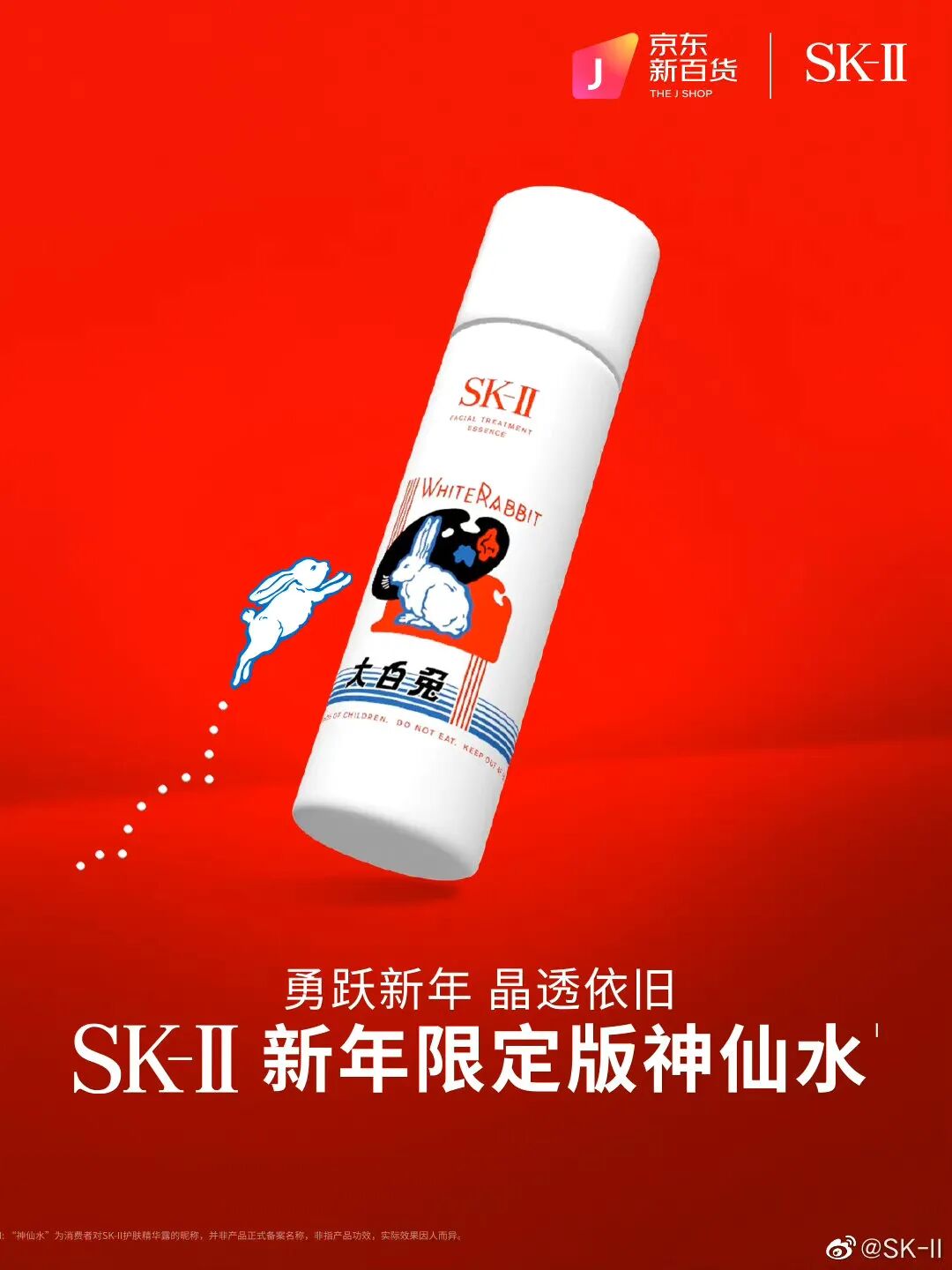 当经典版神仙水遇上了经典大白兔,二者联名推出了—SK-II × 大白兔 2023 新年限定版神仙水。在即将到来的兔年为万千女性送去美好祝愿,同时鼓励大家新的一年如兔子勇跃向前,勇敢地跃入新的一年,去开启未来的新体验。“晶”喜迎新,活出美丽。