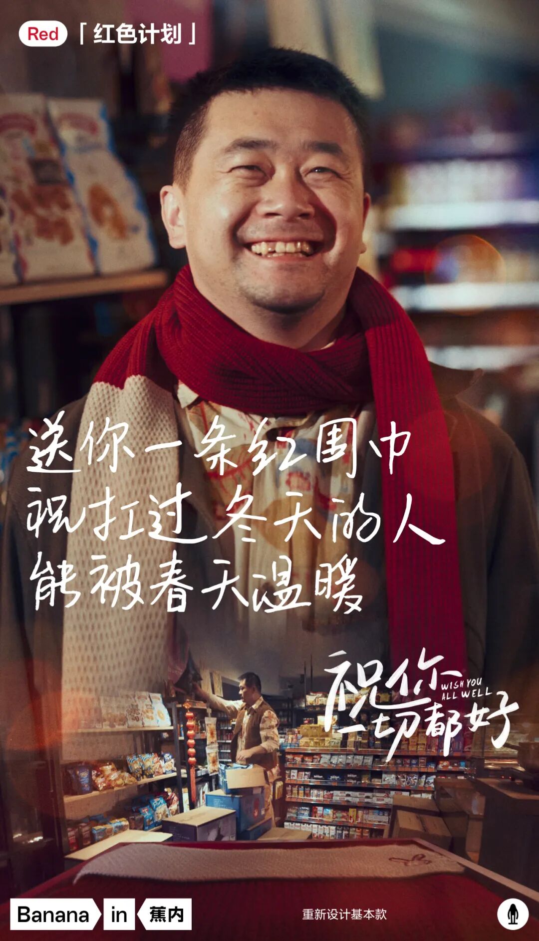 用红色“大口袋”装“开心”的女孩、穿上红色毛衣永远相信光的孩子、穿上红色内裤在第三个本命年一切顺利的中年人、穿上红色文胸越来越爱自己的女主播、穿上红开衫一切平安的女护士、戴上红色围巾扛过冬天的店铺老板、穿上红色家居服翻越题海寻找未来的学生……。不同身份的人在周冬雨的旁白“祝福”中真实呈现,还原出不同个体在人生赛道蓄力向上的瞬间,也刻画出时代坐标之下一个个生动而鲜活的精神肖像,其中有你有我千千万人的影子。一个个掷地有声的新年祝福,是过去一年里的注脚,也映照出当下个体的真实心声。