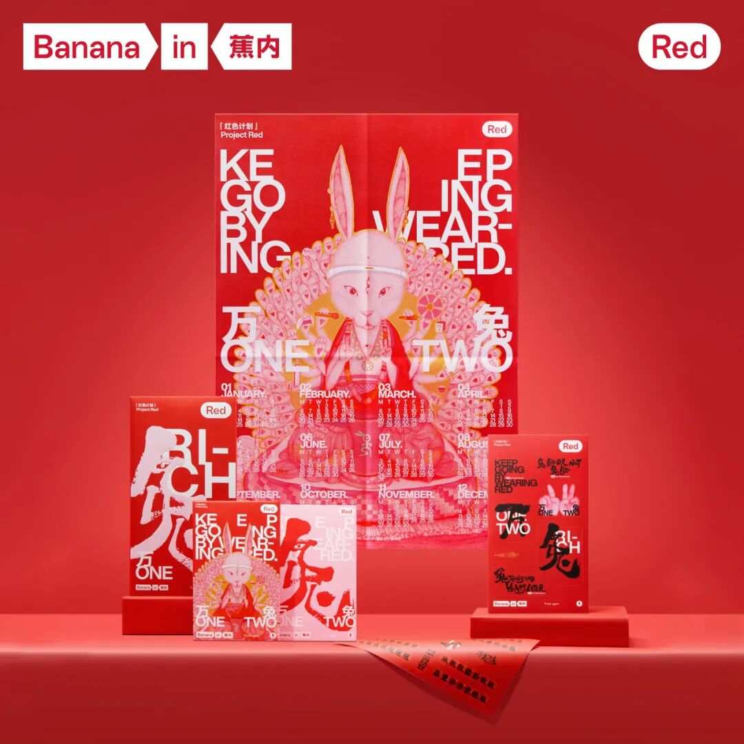 据了解,蕉内「红色计划」今年已来到第五年,作为蕉内自有超级符号之一,自2018年起蕉内每年通过发起「红色计划」项目,利用艺术家联名及创意衍生品为触点,帮助产品与用户建立有效的沟通机制与情感链接,从2019年的嘻哈猪、2020年的先知鼠,2021年的斗牛,2022年的虎山行,再到今年的万兔万兔,这些深受消费者喜爱的有趣生肖形象已成为蕉内于新年系列产品上的标志性存在。过程中,蕉内始终聚焦红色生肖文化的载体,赋予了"中国年"营销更深层的品牌精神内核,从产品、营销、品牌三个维度发力,在借蕉内「红色计划」ICON提升品牌价值的同时,也为品牌做好中国年营销打开另一个思路。