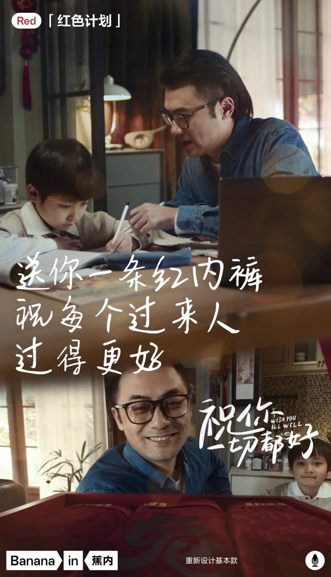 基于这一春节“祝福”需求与洞察,蕉内回到消费者视角,用一个春节“红运”祝福的温情故事与广大消费者展开了一场情感沟通,不仅将蕉内“红品=红运”的新春红色文化植入大众心智,更将春节的“祝福”氛围感烘托到极致,仿若一首穿越四季的悠扬长歌,隽永动人。