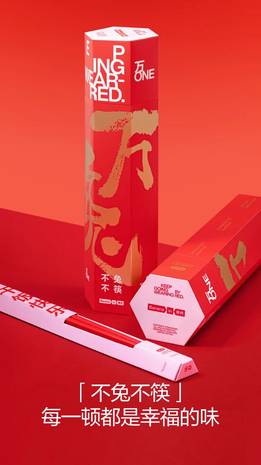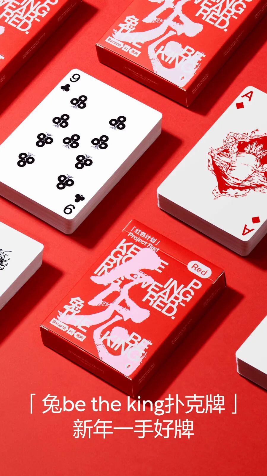 此外,年轻人中盛行的谐音梗文化也在蕉内「红色计划」周边设计上一以贯之得到淋漓尽致的展现,从“兔Do List手账本”、“不兔不筷”筷子套装到“兔Rich/兔You”红包,再到“兔be the king”扑克牌......网感十足。