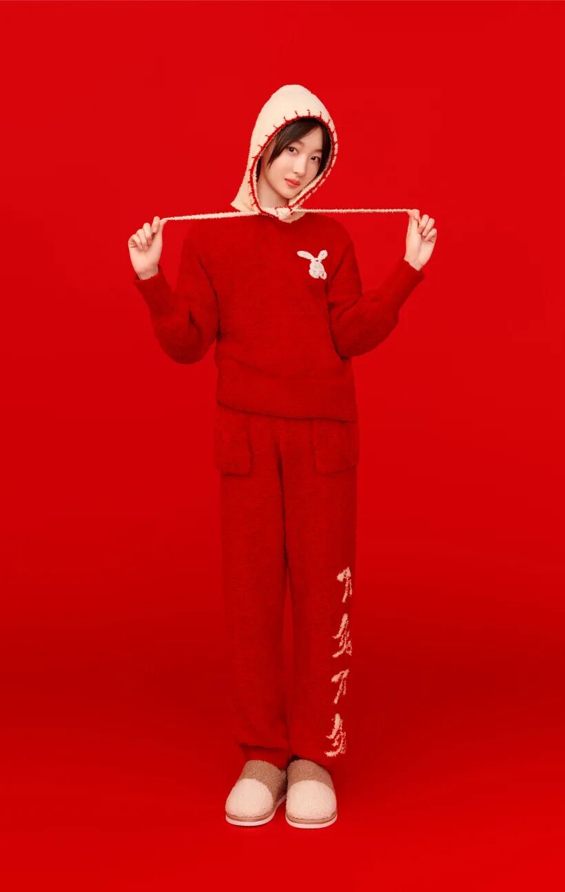 产品上,蕉内跳出了传统新年产品设计大福大吉的框架,融合新奇设计元素与传统文化感的系列红品与创意周边,对每一件袜子、家居服、内衣裤、周边小物认真考究,反馈新一代对新一年认真的祝福与期待。比如今年打造的兔年红品系列,蕉内基于专业色彩系统,经过反复打样对比测试,选定了3种兼具年味与美感的红贯穿于蕉内红品系列之中,同时将蕉内产品的保暖率、透气率、色牢率、无感体验等优势融入其中。